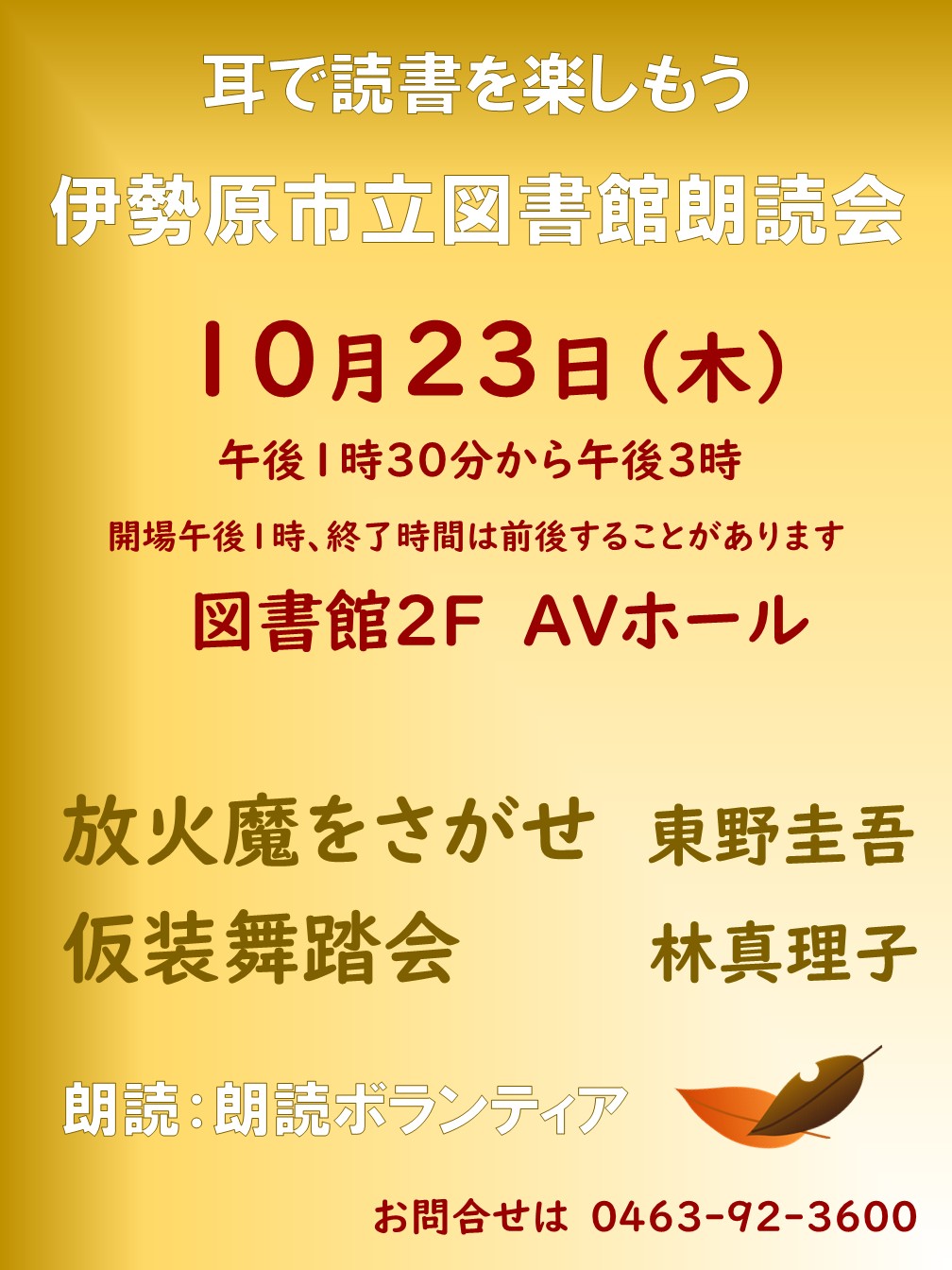 10月23日(木曜)「図書館の朗読会」を開催します