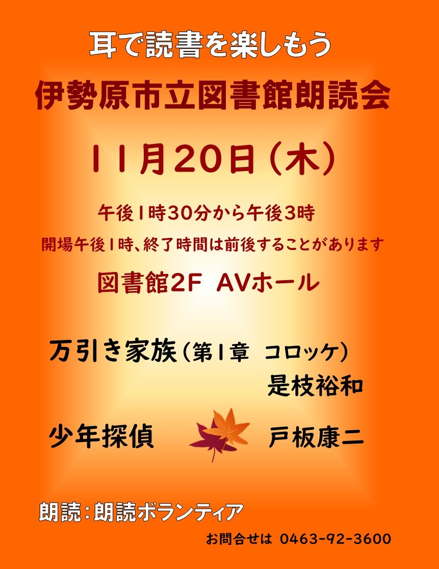11月20日(木曜)「図書館の朗読会」を開催しますについて